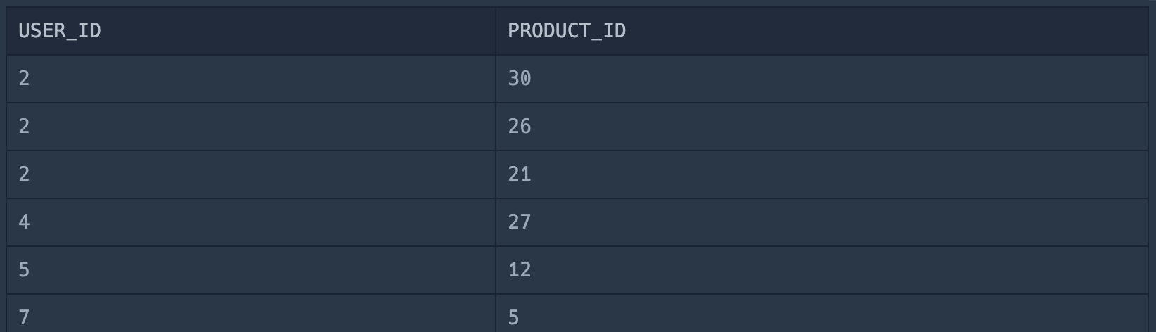 → `GROUP BY USER_ID, PRODUCT_ID`