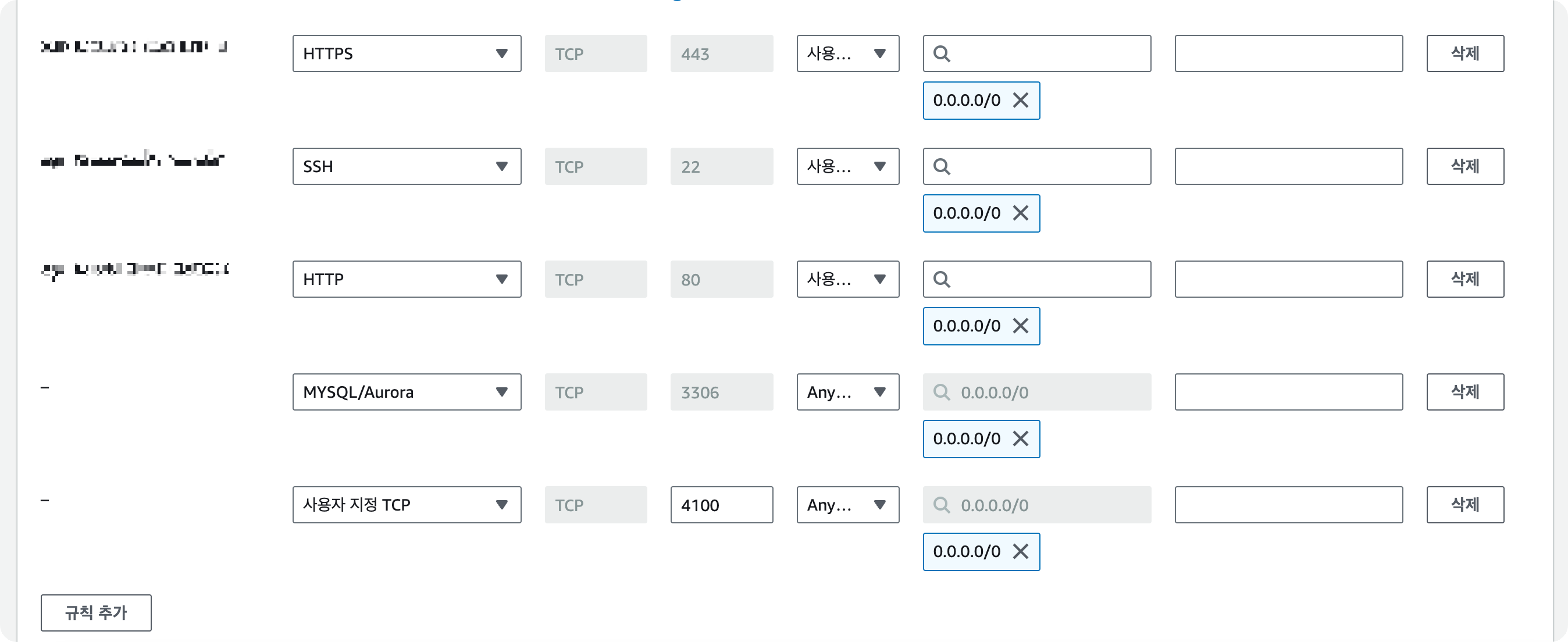 규칙 추가가 끝났다면 오른쪽 하단에 규칙 저장을 클릭하여 저장하고, 보안그룹 설정을 완료한다.
