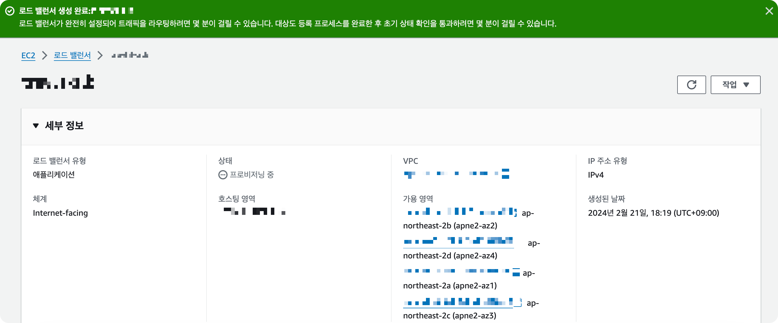 네트워크 매핑 영역에서 EC2 인스턴스와 동일한 네트워크를 포함한 2개 이상의 영역을 선택한다. 예를 들어, 현재 사용 중인 인스턴스가 `ap-northeast-2a` 네트워크를 사용하고 있으면 해당 네트워크를 포함하여 선택하면 된다.