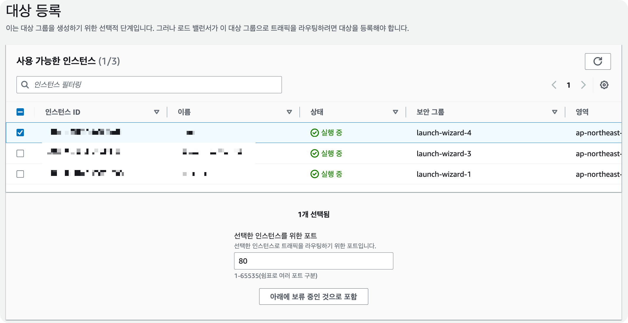 아래 화면에서 로드 밸런서를 적용할 인스턴스를 선택하고, 아래에 보류 중인 것으로 포함을 클릭한다.