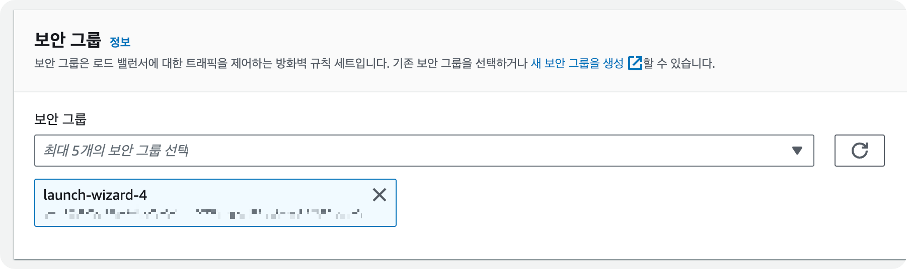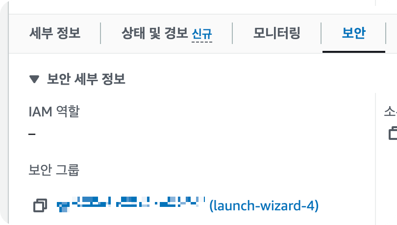 보안 그룹도 EC2 인스턴스와 동일한 것으로 선택한다. 모르겠다면 EC2의 ID를 클릭하여 보안 탭에서 확인하자.