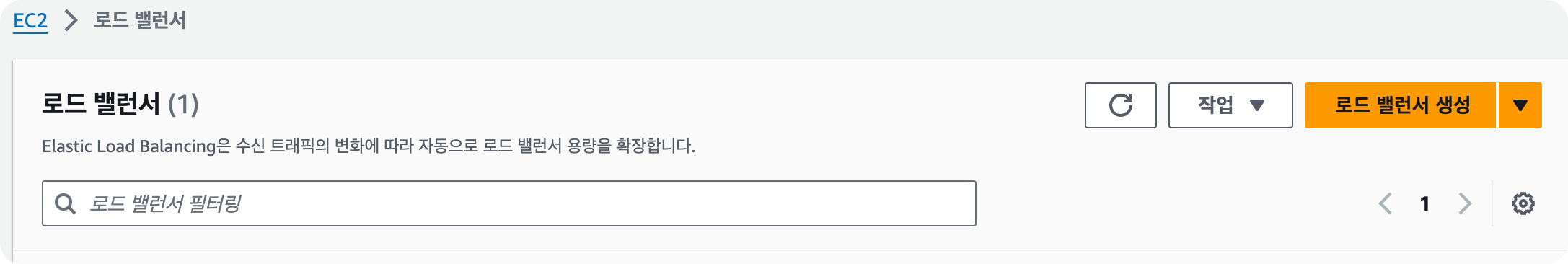 AWS EC2 왼쪽 메뉴에서 로드 밸런서를 클릭한다. 아래 화면에서 로드 밸런서 생성을 클릭한다.