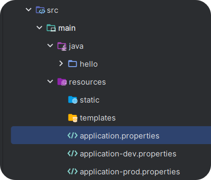 프로젝트 src > main > resources 디렉토리에 `application-xxx.properties` 파일을 생성한다. `xxx`에는 서버 환경을 구분하는 `dev`나 `prod` 등의 단어들이 보통 들어간다.