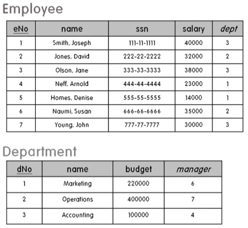 - 데이터베이스 하나에 개념 스키마가 하나만 존재