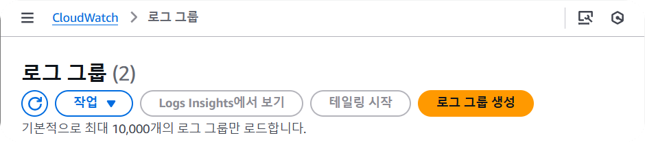 로그 그룹 화면에서 로그 그룹 생성을 클릭한다.