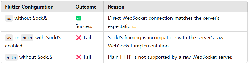 ✅ Flutter에서 SockJS 활성화 시 `ws` 연결이 실패하는 이유