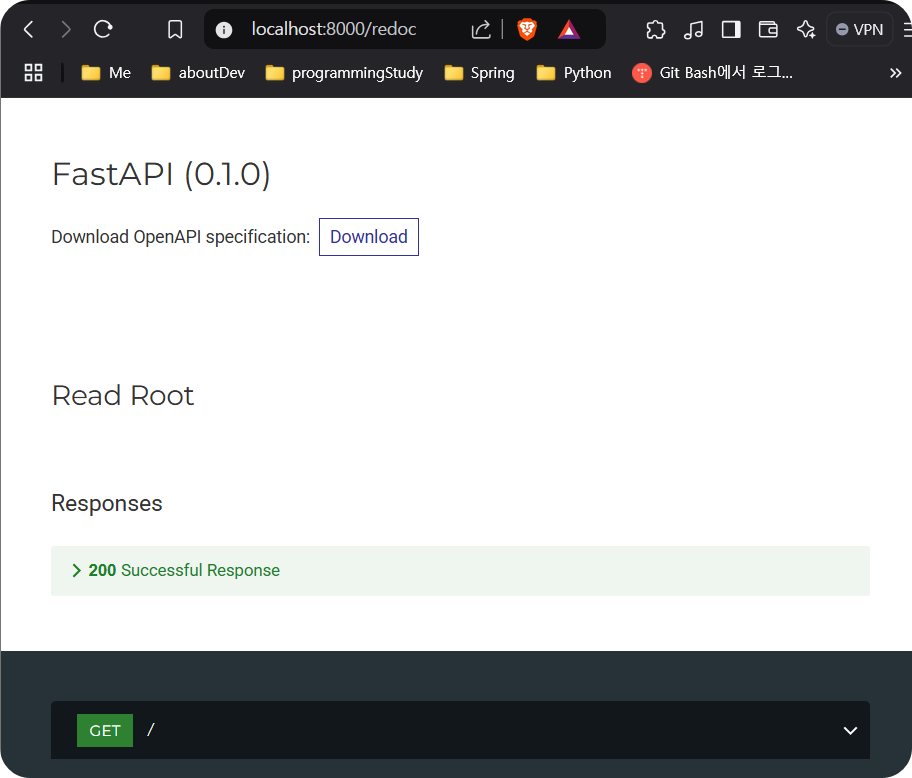 - 처리하는 함수명은 `read_root`이다.
