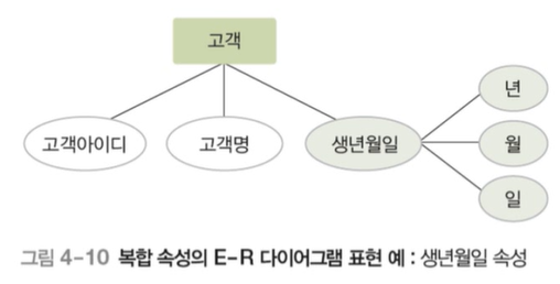- 복합 속성(composite attribute) : 의미를 분해할 수 있는 속성