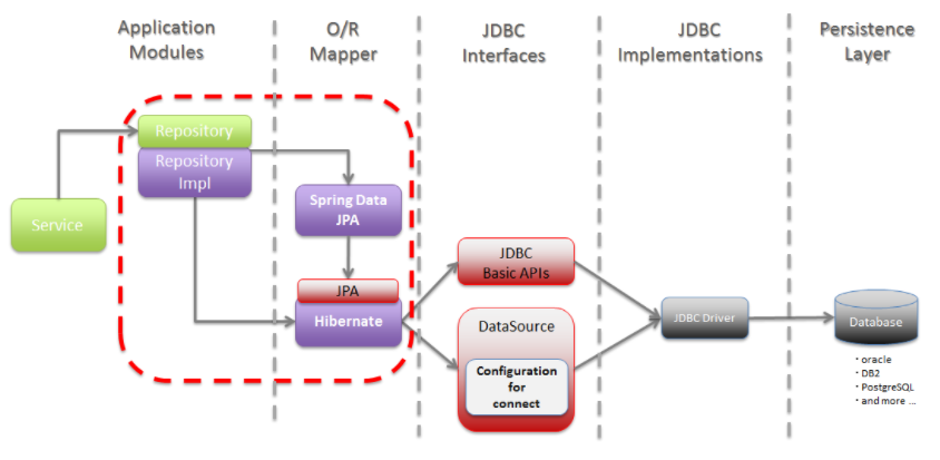 - 즉, ORM을 사용하기 위한 표준 인터페이스를 모아둔 것이다.