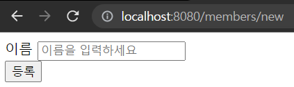 아까 위에 홈 화면에서 회원 가입을 클릭하면 "localhost:8080/members/new"로 이동하고 아래와 같은 화면이 나타난다.