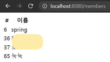 회원 리스트를 보여주기 위한 HTML을 작성하자. 위치는 resources/templates/members이고 파일 이름은 memberList이다.