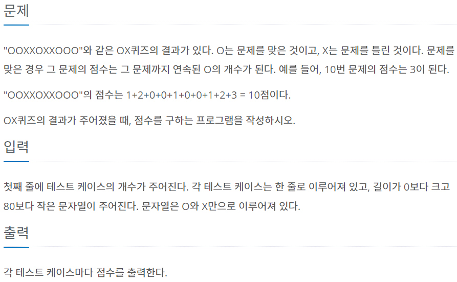 [8958] 1차원 배열 - OX퀴즈 본문