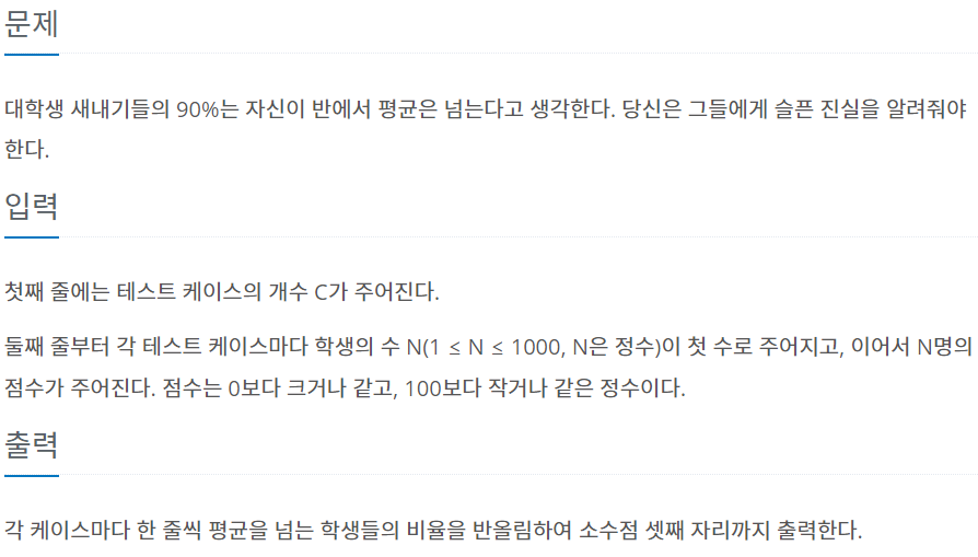 [4344] 1차원 배열 - 평균은 넘겠지 본문