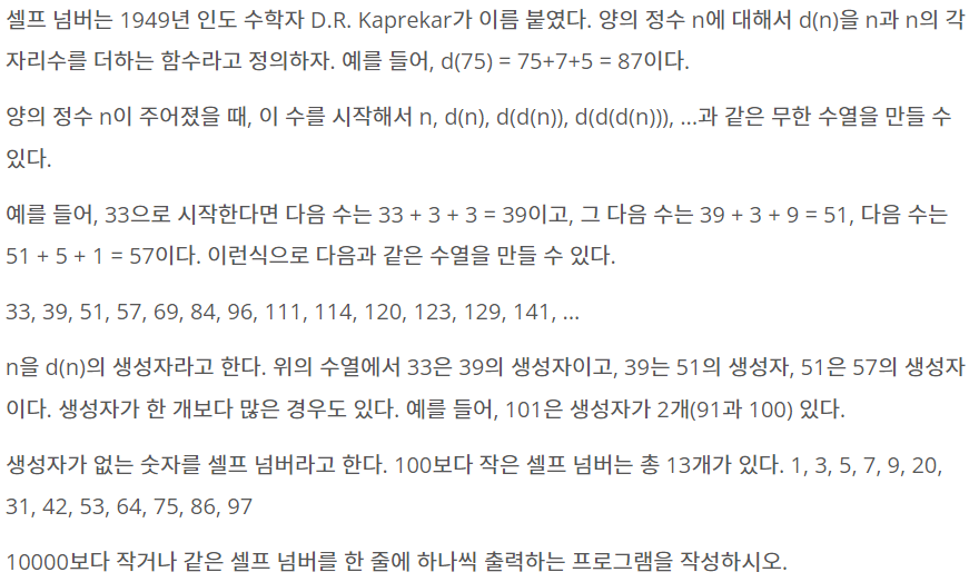 int n = d(i); //생성자가 있는 수, 즉 출력하면 안되는 수