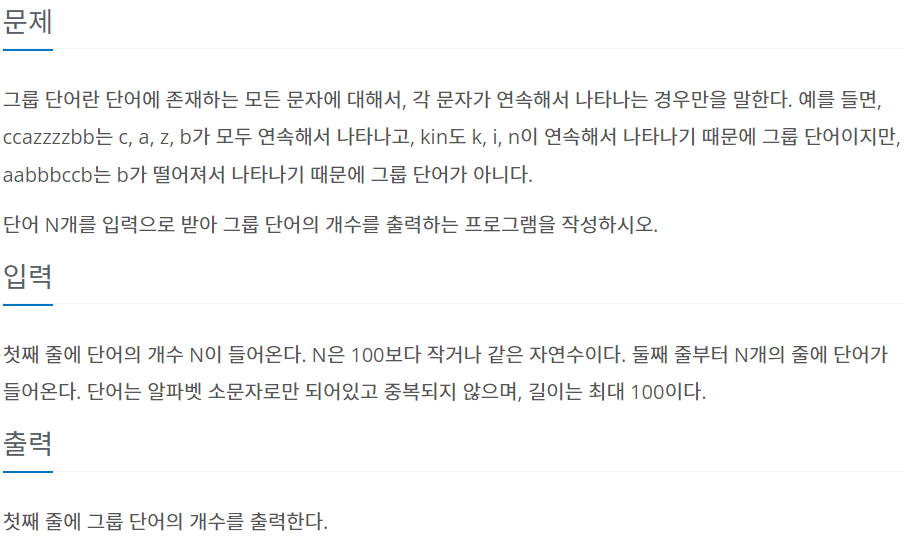 [1316] 문자열 - 그룹 단어 체커 본문