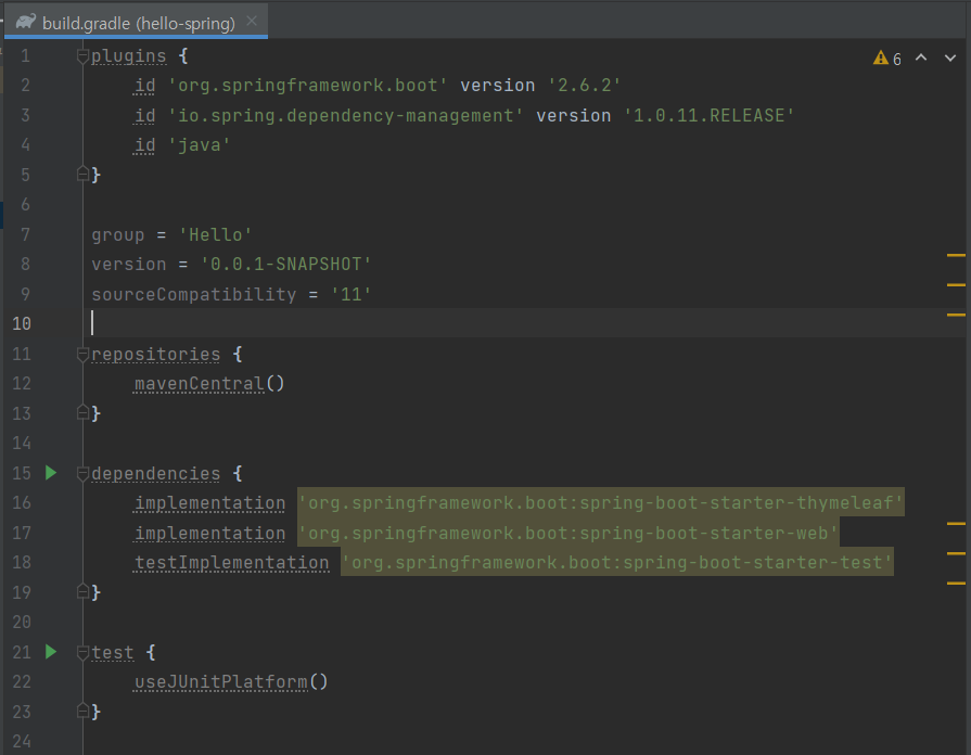 dependencies : thymeleaf, spring web 확인 가능