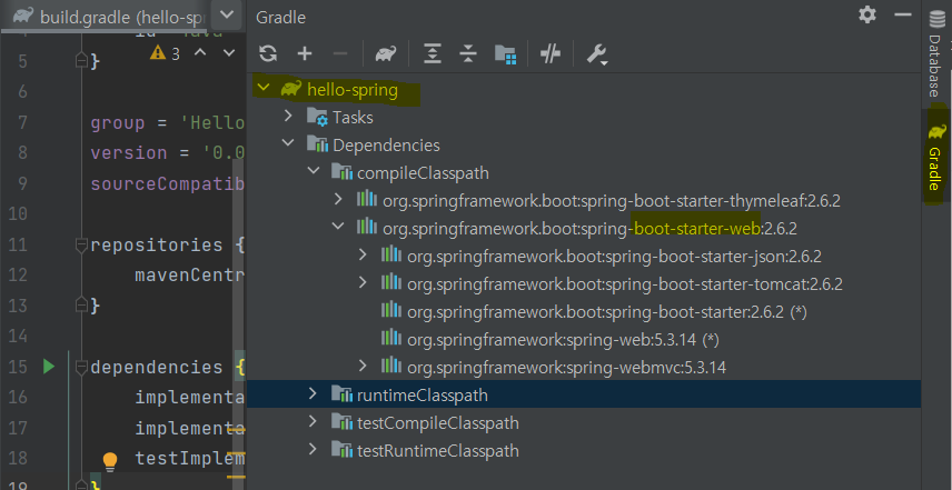 Gradle이 필요한 친구들을 다 가져온다. 즉, Gradle은 의존관계가 있는 라이브러리를 함께 다운로드 한다.