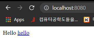 - 웹 브라우저 : /hello → 내장 tomcat 서버 → HelloController → @GetMapping("hello")된 public String hello(Model model) 메소드 실행